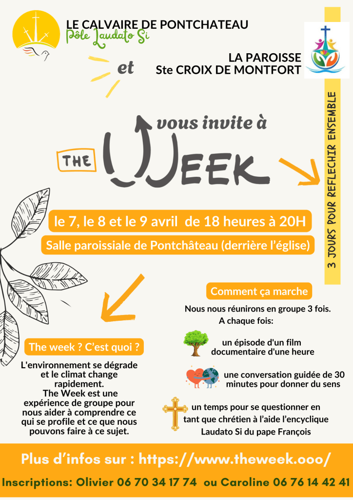 Ci-joint une invitation du pôle Laudato Si du Calvaire de Pontchâteau, en collaboration avec la paroisse.