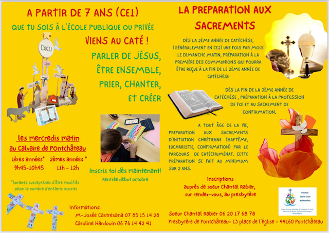 N’hésitez pas à diffuser largement l’information concernant la catéchèse et la préparation aux sacrements. (affiche ci-jointe)